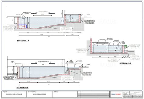 Swimming Pool Structural Drawings . Location and height of any fences on your property. The plan, sections and details can be used for any type of pool drawing.
